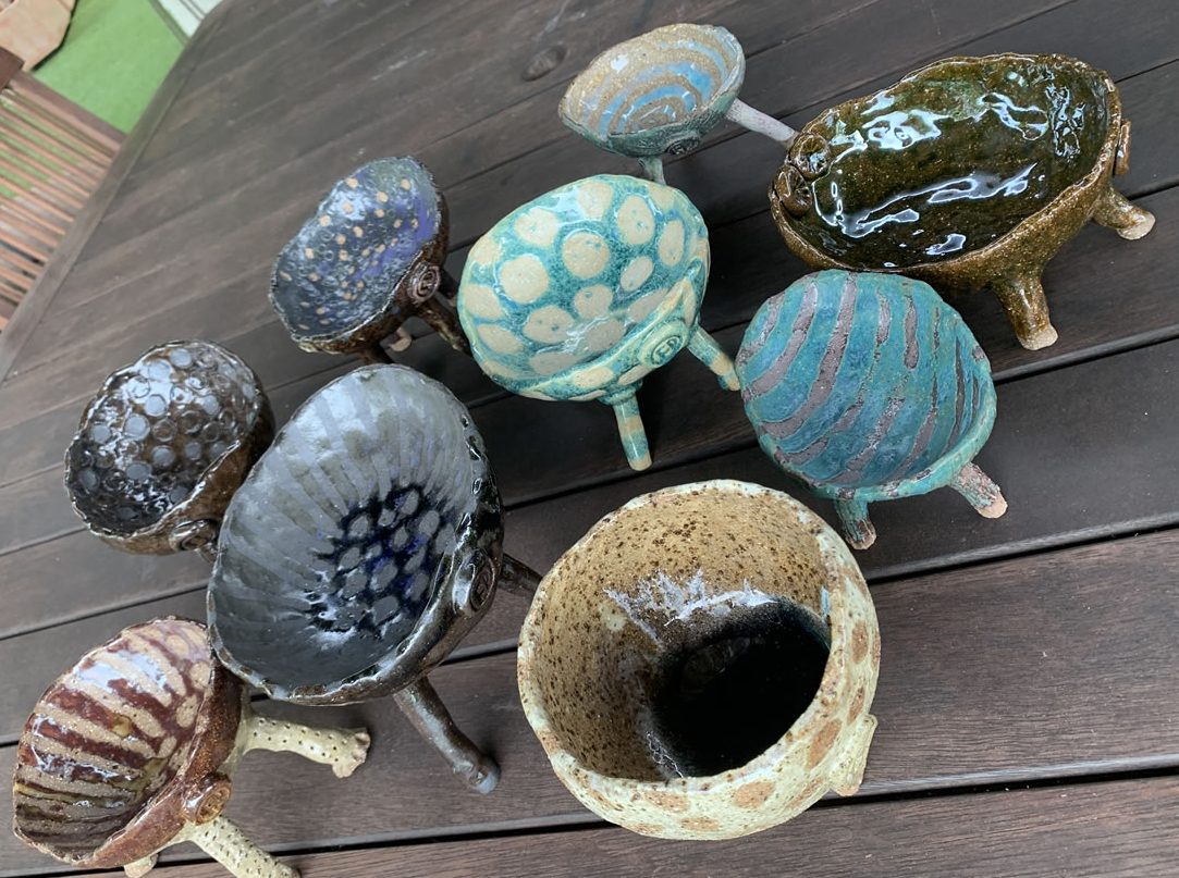 Her ceramic critters bear the marks of both the material and the maker. Each critter created is an exploration of the interplay between human intention and the organic nature of clay. Guided by her hands and a deep connection to the earth, she embraces the imperfections and irregularities that arise during the hand-building process. The malleability of the clay allows her to break free from the constraints of conventional wheel-thrown forms, giving rise to unique pieces that possess a rugged authenticity.