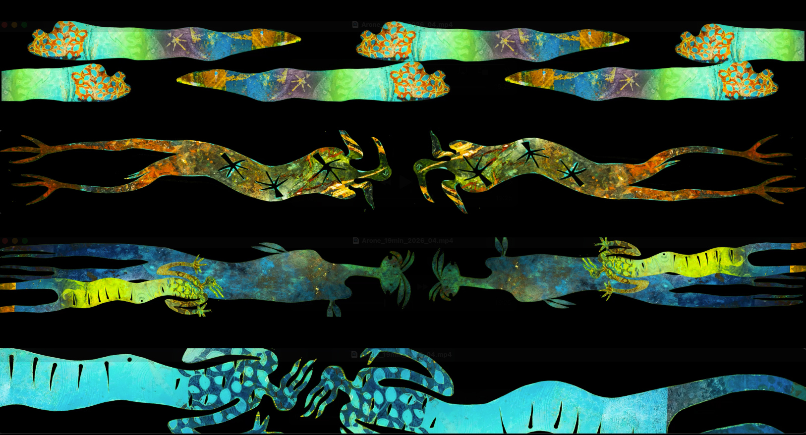 The Bulmba-ja façade is a fitting platform to present some of the hand-cut stencils that the artist used to create his many luminous monoprints in moving digital form. The residue of coloured pigments captured on the stencils reveals an unintended aesthetic appeal that celebrates creative techniques pioneered by the artist.