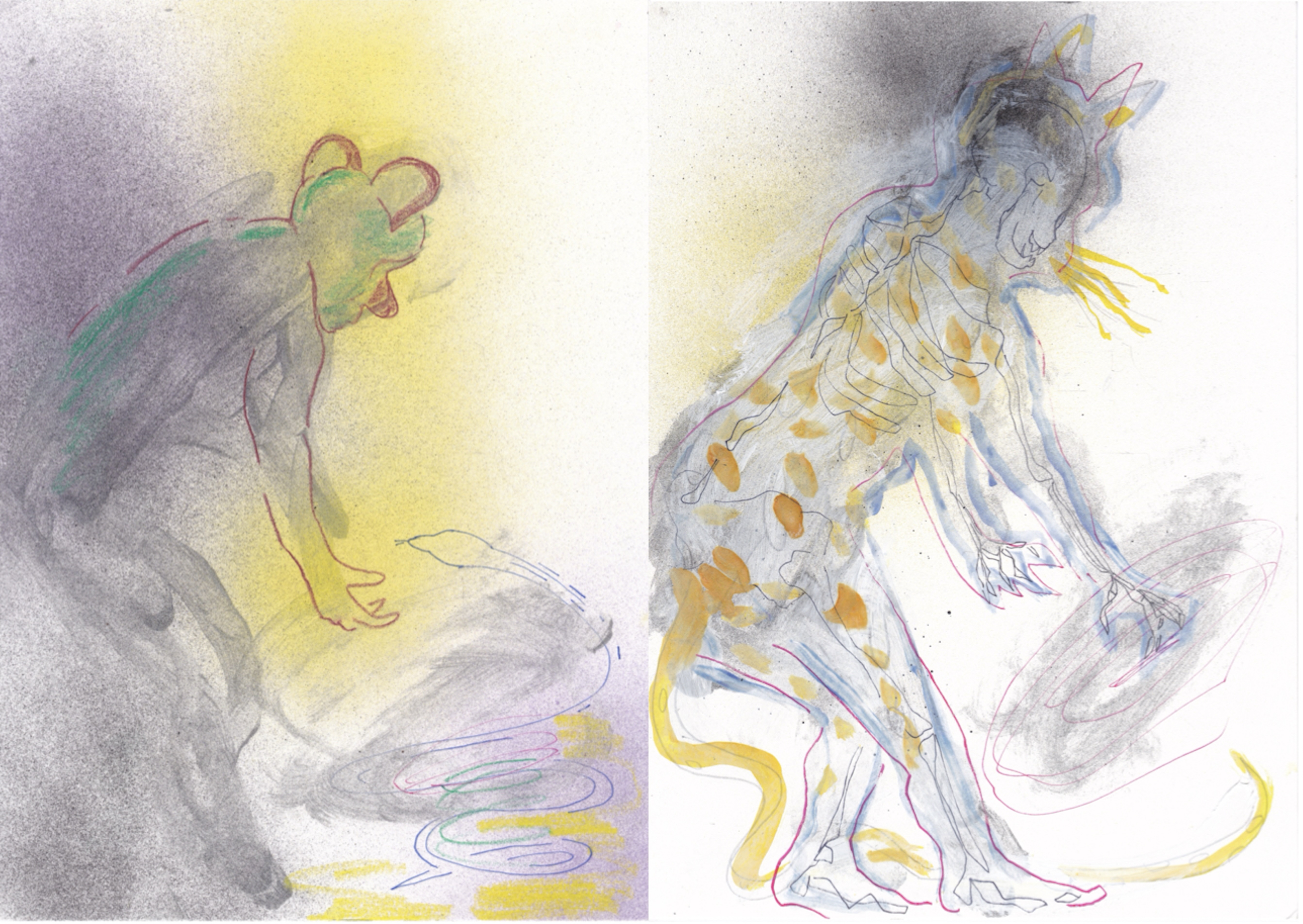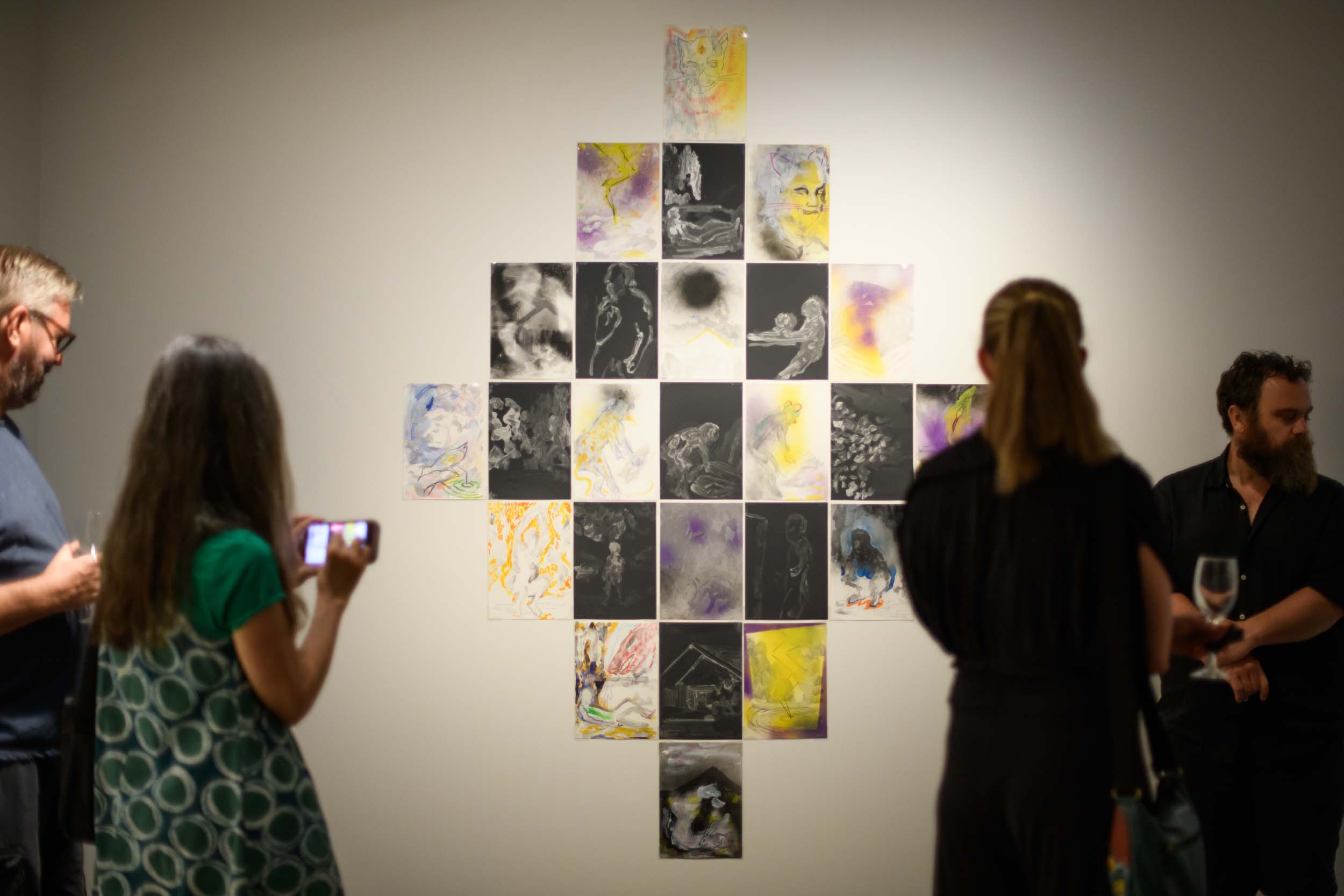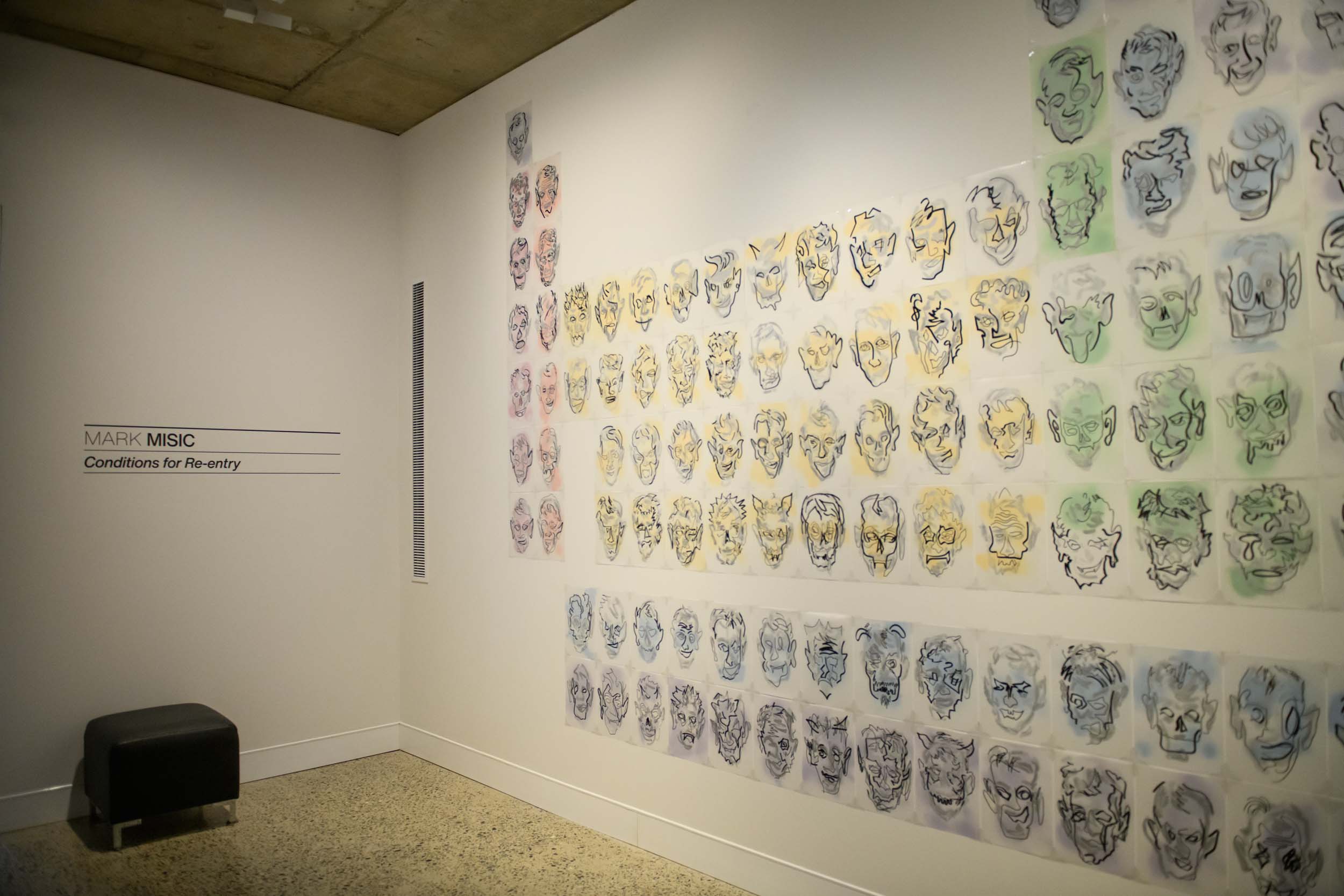 Conditions for Re-entry Part 2 brings together Mark Misic’s use of installation, drawing, painting and video, featuring figures, masks, animals and symbols representing acts of transformation, transmutation and transcendence.