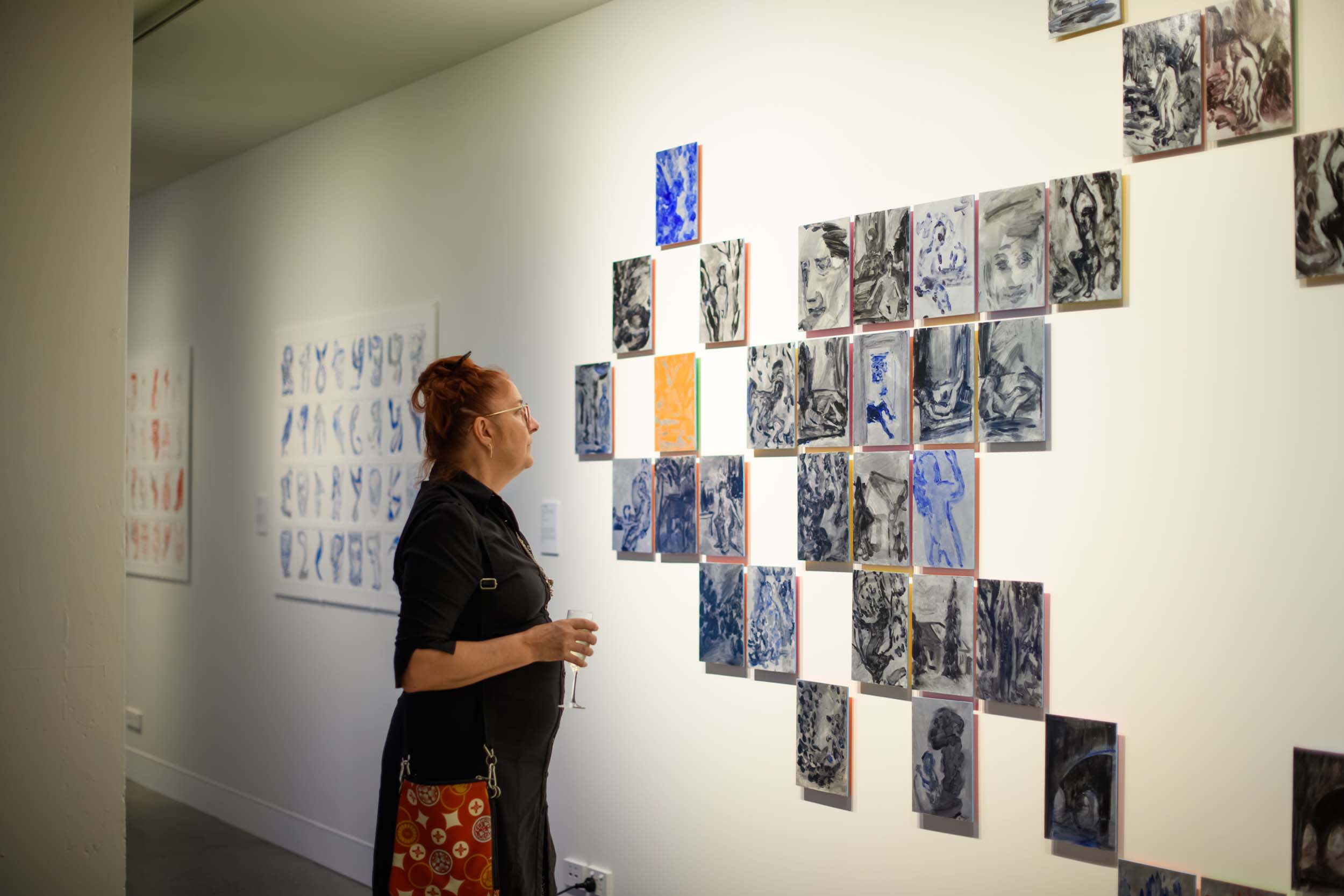 Through repetition, line and colour this body of work draws on the tradition of the self portrait to explore the intersection of the physical human experience and universal phenomenology. Misic explores the strange couplings, flows and alliances that occur when our internal systems of self-governance and human physicality morph with the primordial landscape.