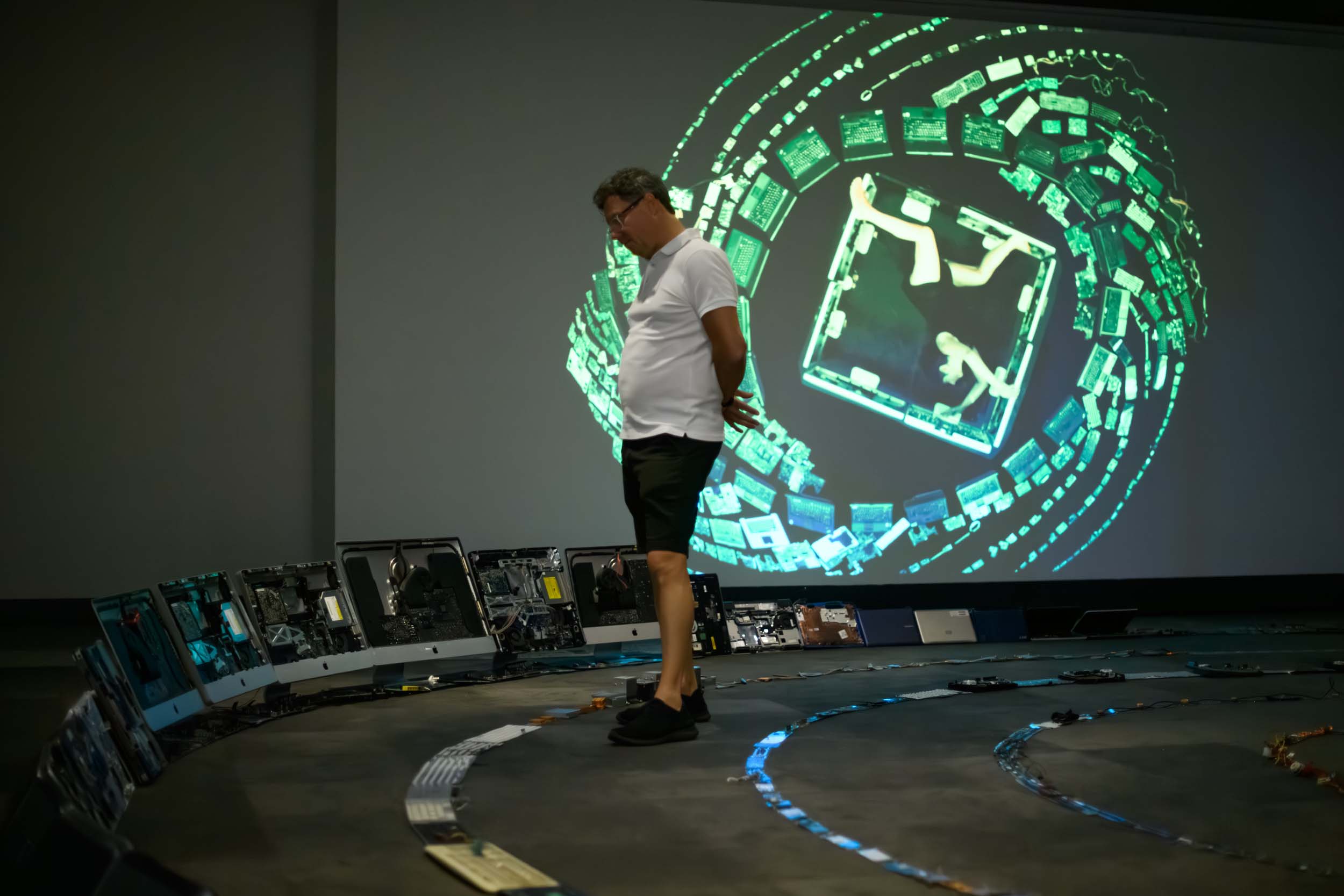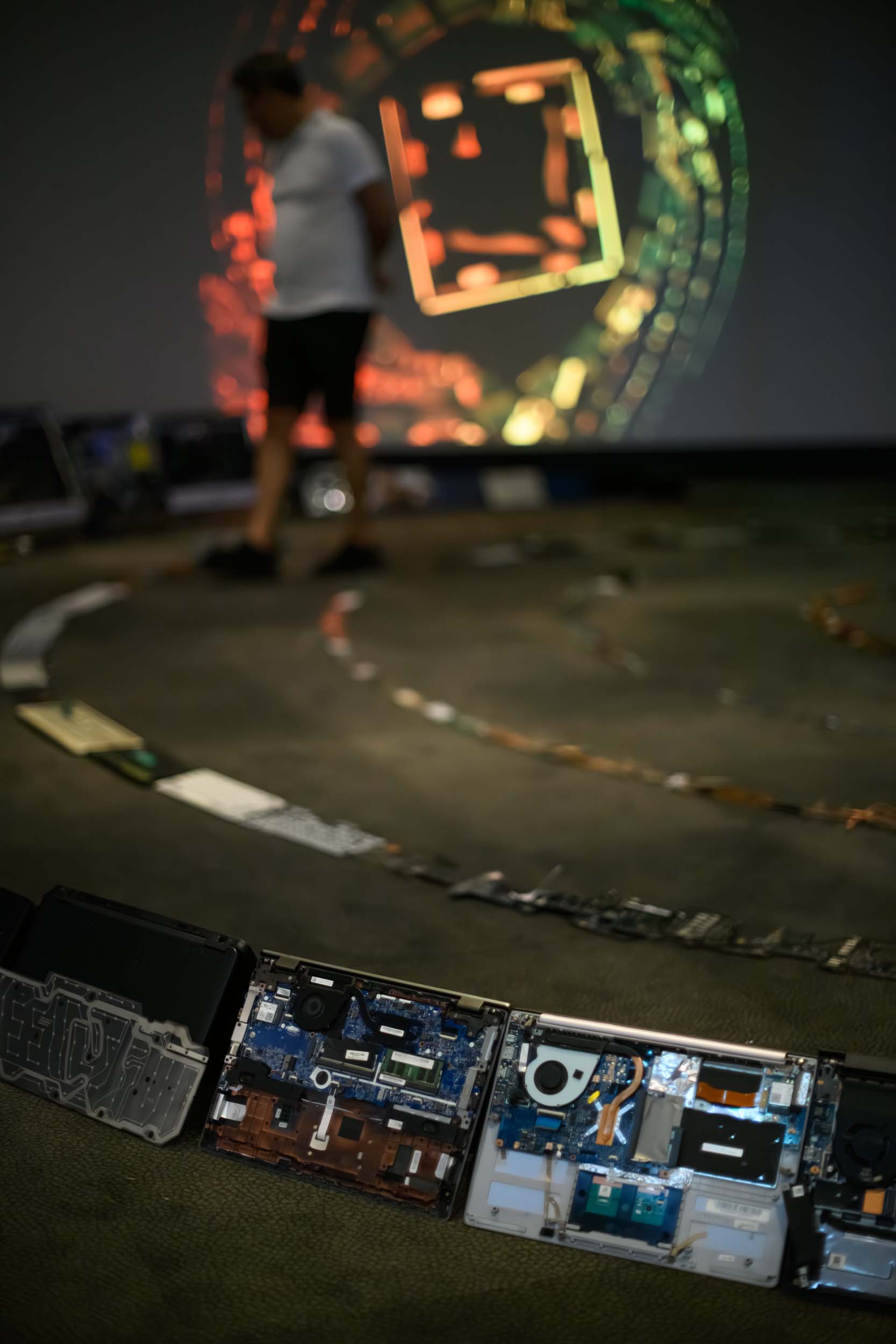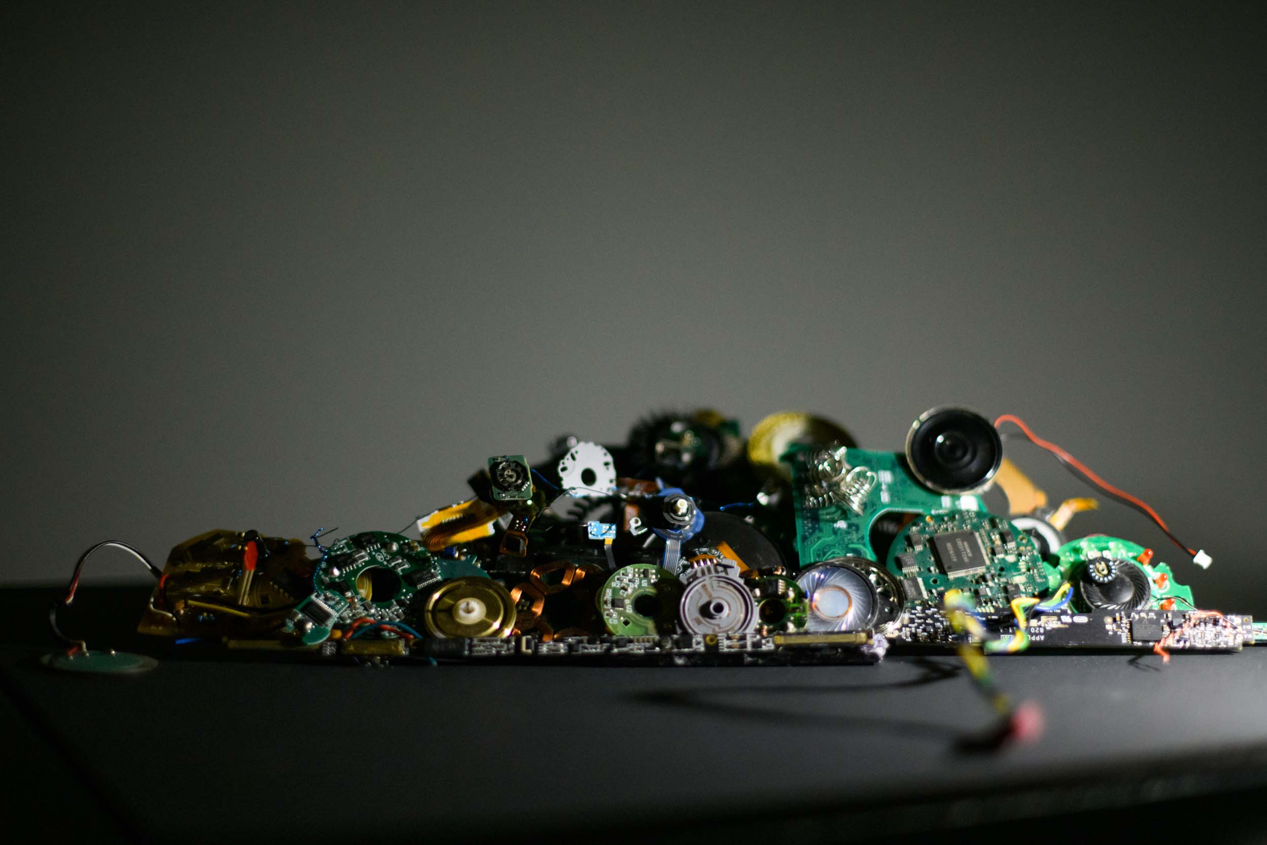 “I approach obsolescence to explore the hidden side of things, uncovering layers of knowledge accumulated over time and gaining a deeper understanding of what often escapes us in the use of our tools. Although marketed as new, every electronic device holds a long lineage of technological evolution. By dismantling so-called obsolete objects and repurposing their components, I make these embedded histories visible. Reconfiguring these parts helps us recognise the full life cycle of our devices—from design, extraction and production to use, disuse, partial reuse, waste, and eventually a slow decomposition process that unfolds over a ‘galactic’ time scale, far longer than all previous stages combined.