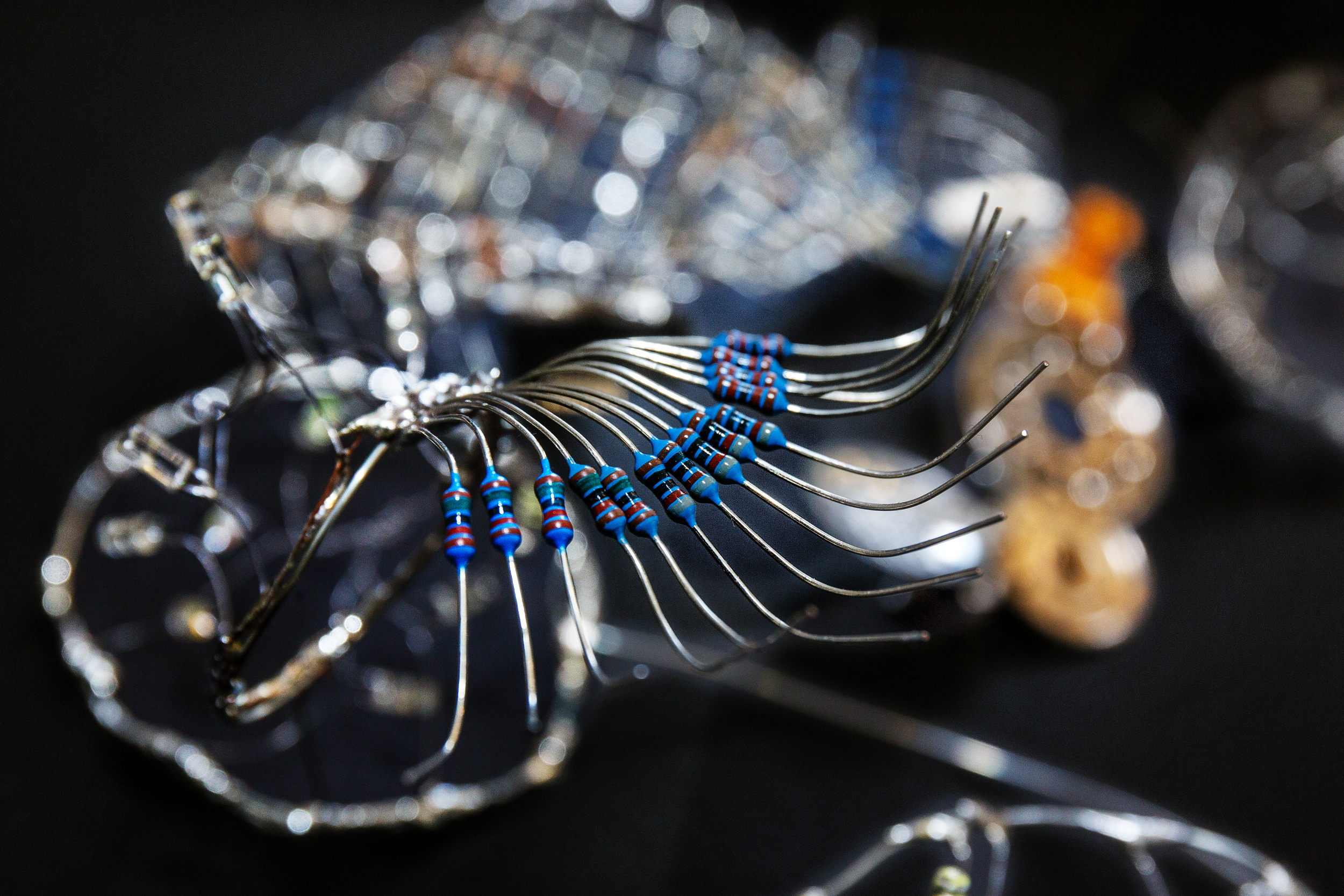 e-Galaxy is an immersive, participatory installation by Suzon Fuks made from discarded electronic waste. Combining video, delicate miniature sculptures, artist books, and jewellery, the work invites audiences to activate the ‘galaxy’ by dismantling old devices, responding to guided prompts, and adding components to an ever-changing spiral. Challenging our throwaway culture, e-Galaxy uncovers the beauty within the mundane while raising awareness of recycling, sustainability, and the social and environmental costs of electronic production. It reconnects people with the material origins of technology—an archaeology shaped by accumulated inventions and minerals that took billions of years to form, yet only moments to extract.