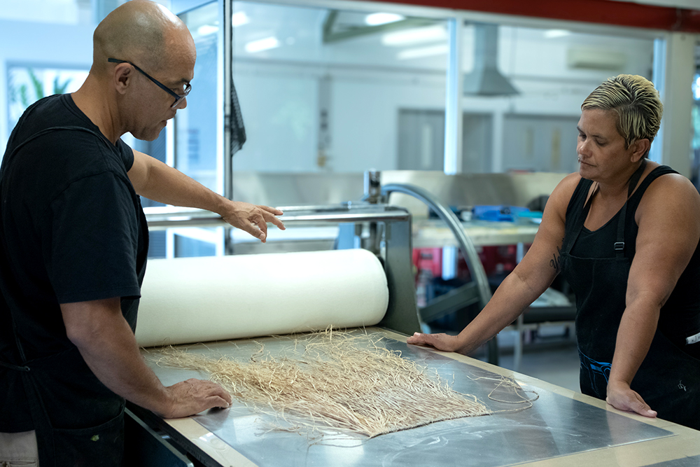 During the annual Cairns Indigenous Art Fair (Thursday 25 July – Sunday 28 July), NorthSite presents an exhibition of new prints and weaving by artist Ivy Minniecon (Kuku Yalanji, Kabi Kabi, Gooreng Gooreng and Vanuatu) developed with Dian Darmansjah at NorthSite Art Studios, alongside paintings by her Aunty and mentor, Karen Gibson. The display at CIAF STALL 1 titled ‘Women’s Business’ reflects the importance of women staying strong and connected to Country, family, and community.