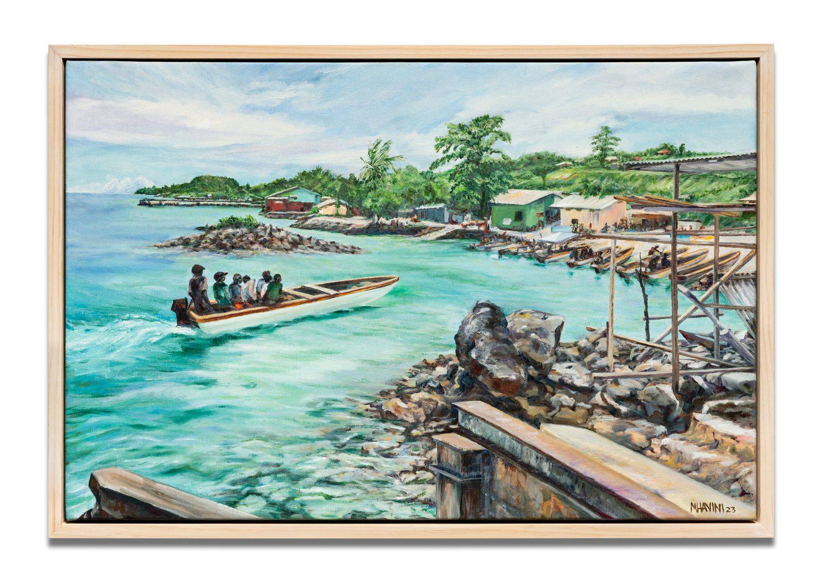An Australian by birth, Marilyn was adopted into her husband Moses Havini’s clan in 1970. Marilyn supported Moses as representative of the Interim Government of Bougainville during their exile in Sydney. The couple played a key role in the Bougainville Peace Process enabling them to return to live on ancestral lands in 2000. Throughout her life, painting remained at the core of Marilyn’s identity and her artworks provide personal and deep insights into a wider story of what shared aspirations mean for her and the people of Bougainville.
