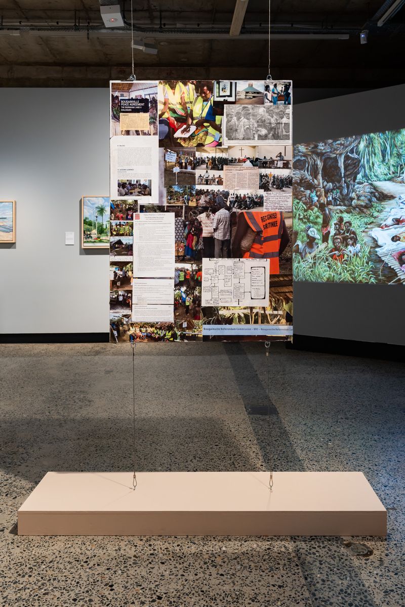 Bringing together archives, video, and paintings, Shared Aspirations is presented at a critical juncture in Bougainville’s journey towards Independence inviting us to share the art of two women whose lives have both contributed to – and been shaped by – the Bougainville’s people’s pursuit of cultural, economic and political self- determination.