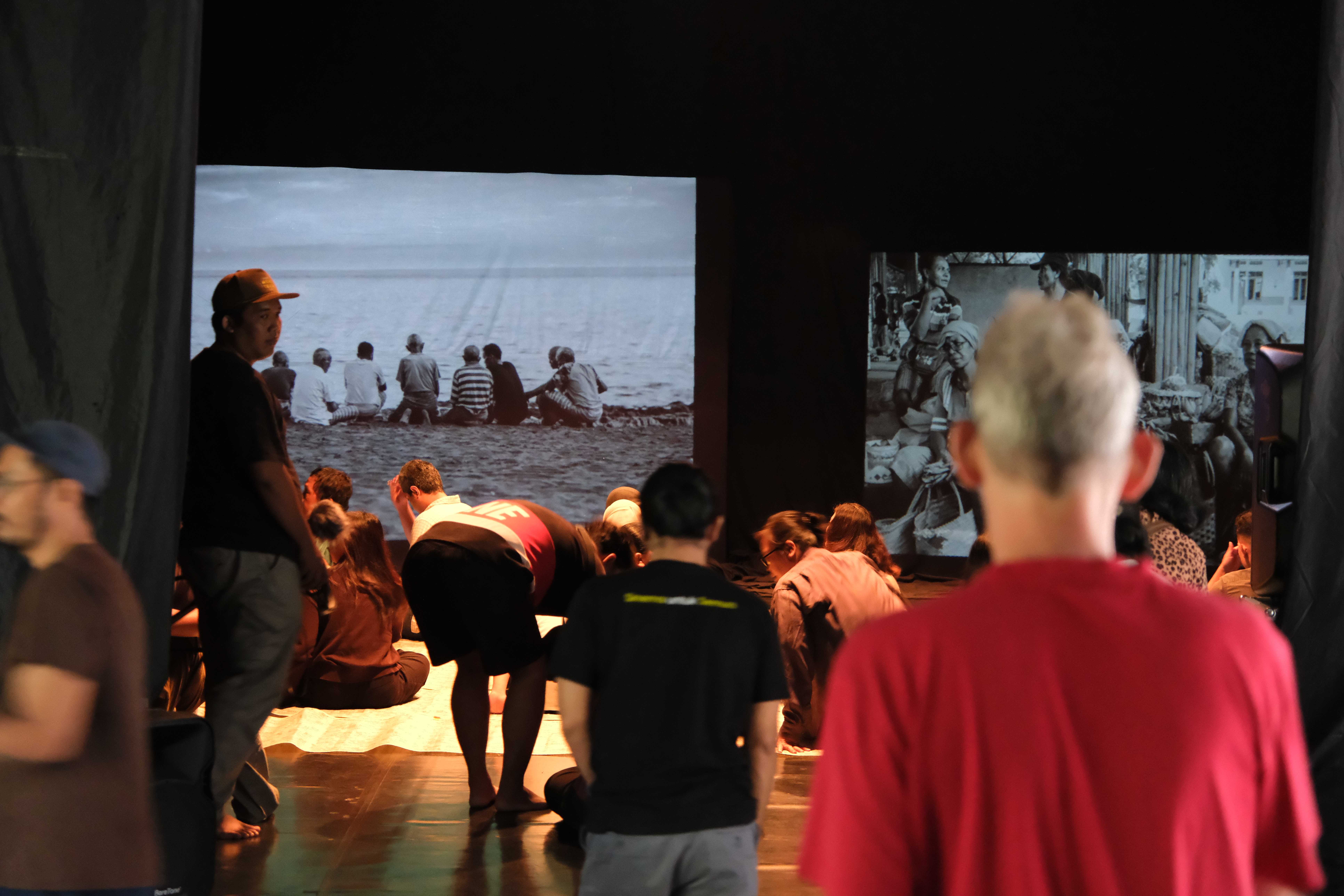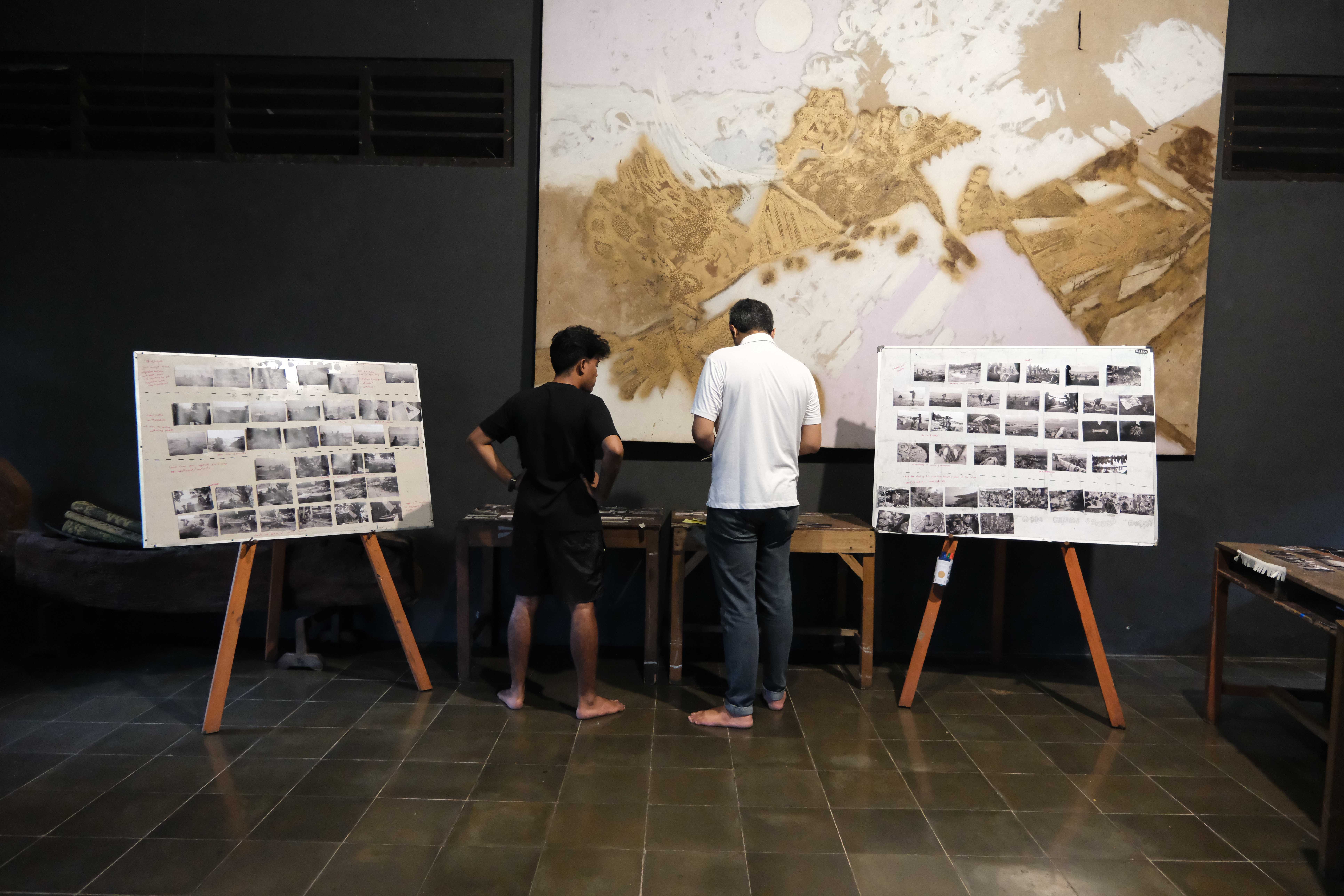 When we finally arrived in Yogyakarta for the two-week intensive, everything deepened. Being at PSBK together allowed us to step into the physical world of the project. We chose our space, imagined how the work might live inside it, and returned again and again to the intimacy in Vickram’s photographs. There is a closeness in the images — as if the camera disappears and you are simply sitting with the villagers: beside the ocean, in the boats, in the market, under the shade of trees. We wanted the audience to feel that, too.